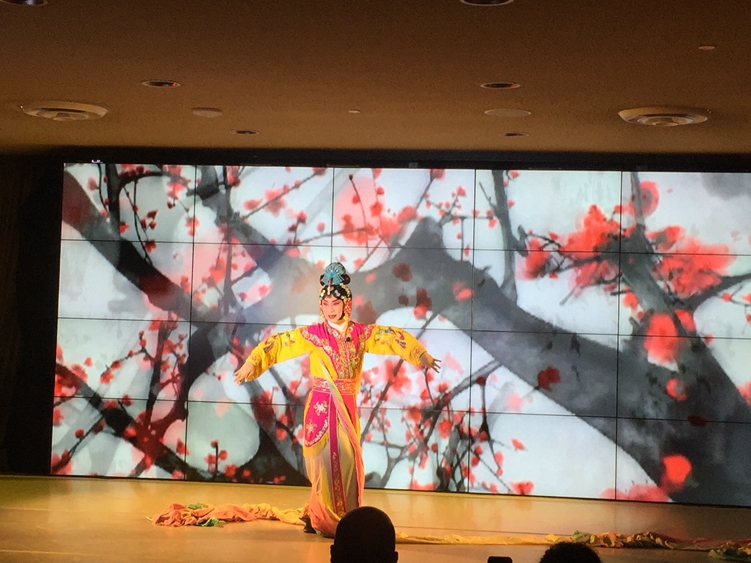 当地时间12日晚,联合国中国书会和美国东方艺术基金会在纽约联合国总部联合举办了首届“友谊之桥”中国春晚,联合国副秘书长、各国使节及国际职员约500余人出席。图为演出现场京剧大师梅葆玖的嫡传男旦传人刘铮在表演京剧《天女散花》选段。