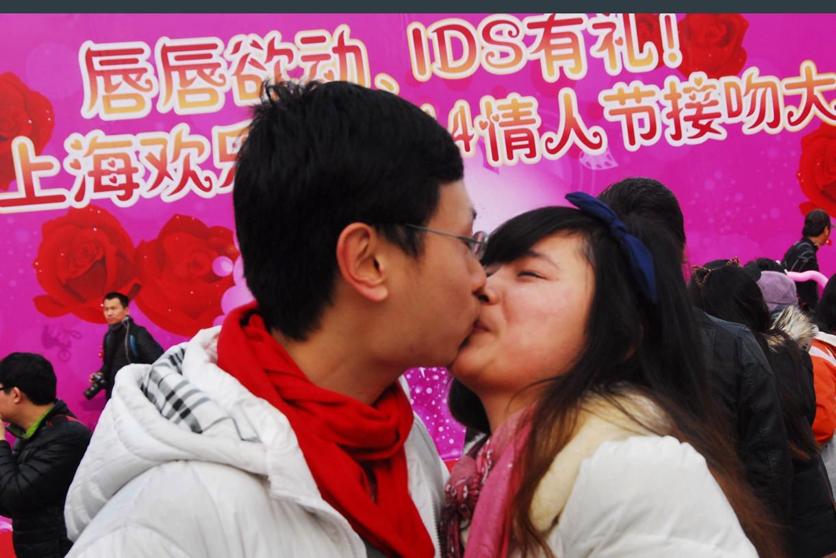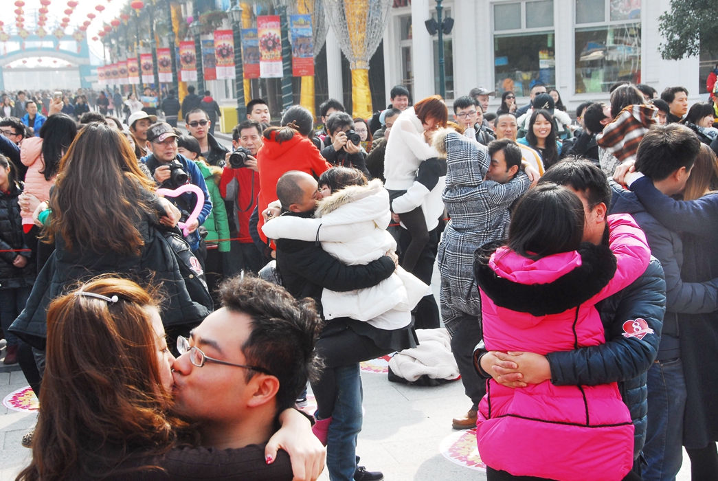 昨天情人节,上海欢乐谷上演浪漫情人接吻大赛,50余对俊男靓女们激情四射、情深意切,以特殊方式见证爱情。
