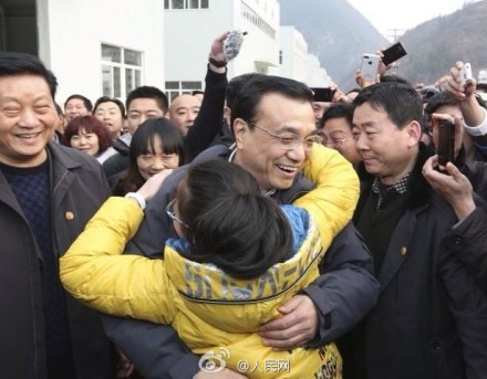“总理被小女孩‘求拥抱’”的照片随即在网络上广为传播。一年后,江欣桐回忆说,自己之所以提出这样的要求,是因为站在面前的李克强