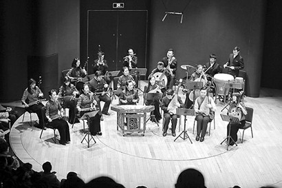 本报讯 (见习记者 祝越)昨天下午,一场由上海民族乐团带来的2015贺岁音乐会在上海东方艺术中心举行。江南丝竹、民族室内乐、弹拨乐合奏……精心改编的民乐给沪上观众带来不少惊喜,乐团将南方的《姑苏行》和北方的《喜相逢》两首竹笛乐曲“混搭”,北方的豪迈和南方的柔美结合在一起;《霸王别姬》中的《夜深沉》和《击鼓骂曹》中的鼓段结合,带来别开生面的《古风》。此外乐团用古琴模拟流水,用清脆明亮的柳琴表现了万物生机勃勃,用唢呐模仿鸟虫鸣叫。最终在一曲《花好月圆》中,音乐会进入尾声。