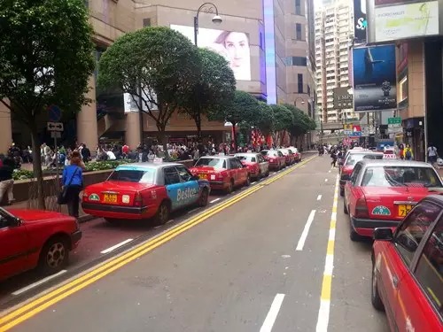 (香港闹市铜锣湾:昔日“人排队等车”,今为“车排队等人”。)