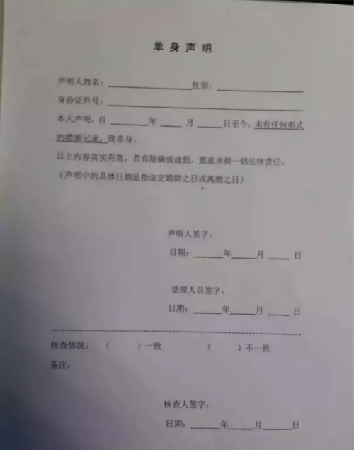 也就是说,户口本上写未婚+你自己承诺未婚,从而证明单身。