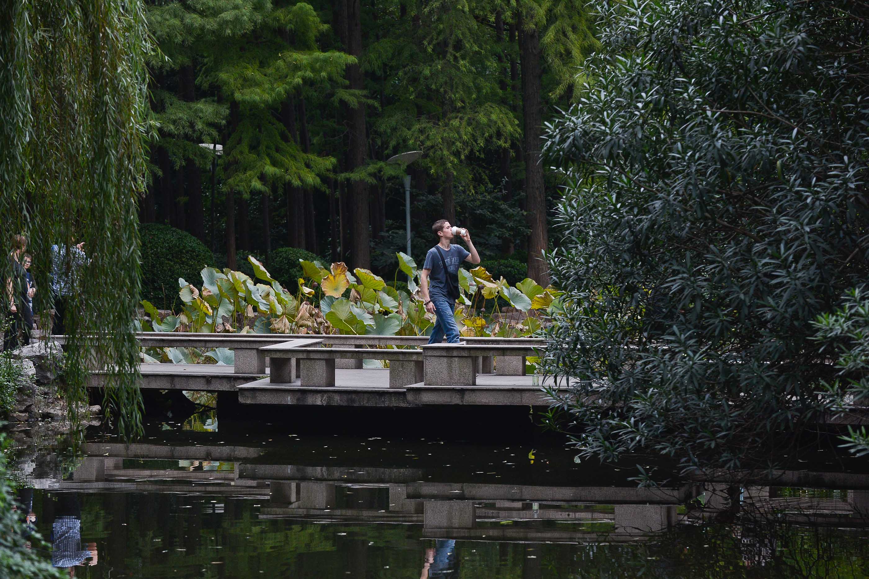 申城虽然早已入秋,但近期气温却一直在25度上下徘徊,市民大多短打出行,毫无秋意之感。人民公园荷花池内,通常夏季6-8月盛开的荷花依旧“亭亭玉立”有些“接天莲叶无穷碧”的感觉,然而一旁的梧桐却已略微泛黄。文汇报记者 陈龙 摄