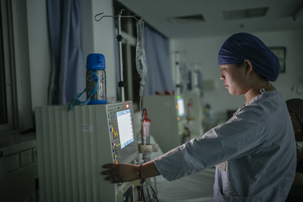 凌晨3点,有的患者已完成当天的透析,护士们帮助他们“下机”。