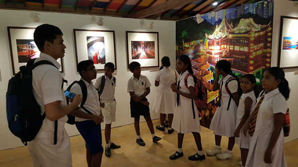 10月29日,一群斯里兰卡小学生参观“魅力上海”艺术图片展