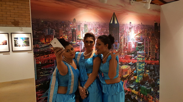 10月29日下午,身着传统服饰的斯里兰卡姑娘们在“魅力上海”艺术图片展现场