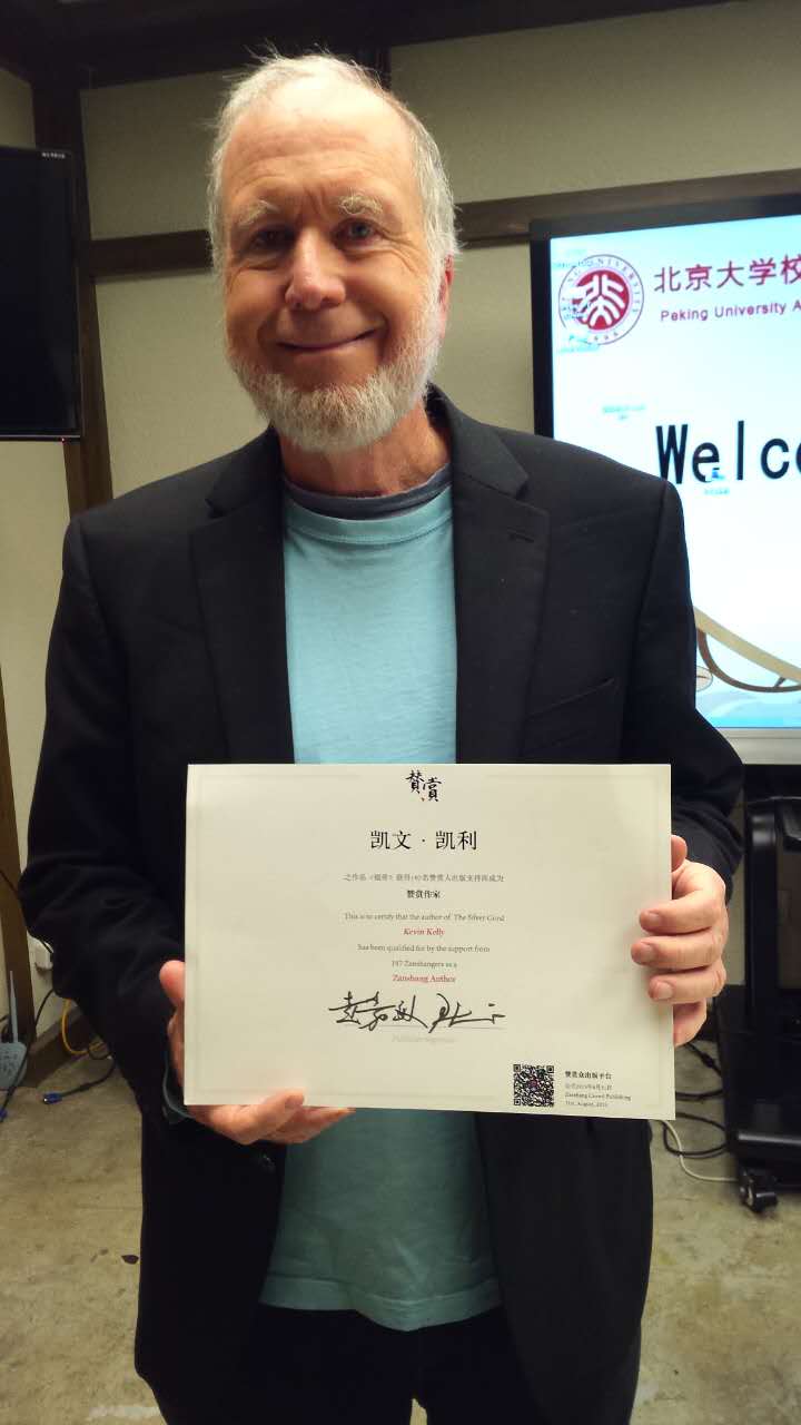 在《银带》成功出版的支持者见面会上,KK表示,非常欣赏“赞赏”众出版的理念。 “赞赏” 在传统出版方式之外找到了一条新的路径,让作者精准地定位自己的读者,并与读者产生更多的交互。同时,他高兴地接受了“赞赏”颁给平台第一位外籍作家的证书。