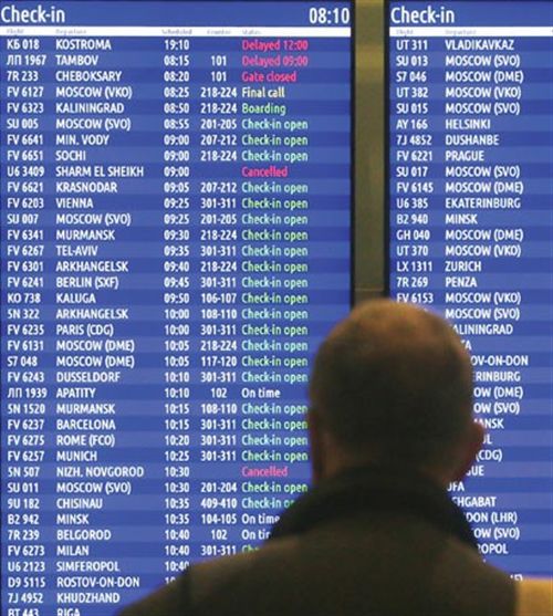 圣彼得堡国际机场的航班信息牌显示,飞往埃及沙姆沙伊赫的航班已经被取消。CFP