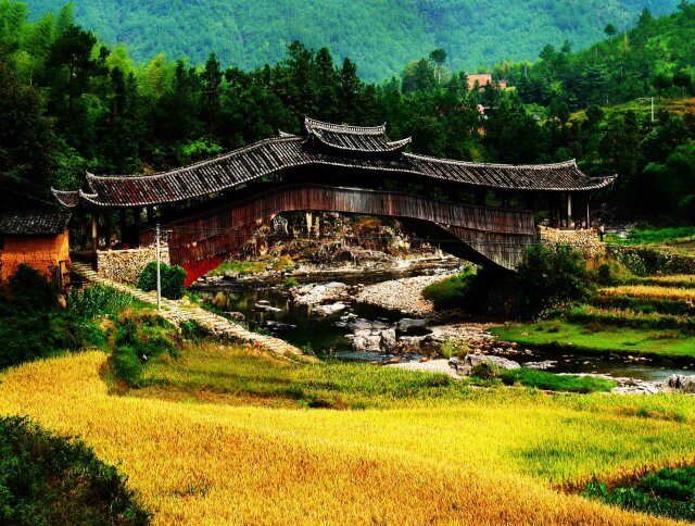 作为中国传统木拱桥,泰顺廊桥已跨越了千年历史。目前,泰顺全县境内现存各类桥梁970多座,古廊桥33座,其中15座古廊桥被列为国家级文保单位,是名副其实的“廊桥之乡”。没有一颗钉子,却无比牢固。廊桥不仅仅是作为交通桥梁所在,更多的是为寻山、祭祀、守护风水等所用。目前,泰顺廊桥文化园已创成国家AAAA级旅游景区,廊桥博物园落地开工,木拱廊桥被列入中国世界文化遗产预备名单,木拱桥传统营造技艺被列入“世界人类急需保护的非物质文化遗产”。