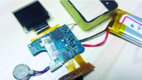 手环如何实现交通卡功能?记者进行了拆机实验。拆开后的手环完全没有了神秘感,主要由电路板、OLED显示屏、马达、电池以及长方形框架组成。电路板上镶嵌着大小不一的黑色小方块,分别是CPU、蓝牙组件、交通卡芯片等。其中“交通卡”只有米粒般大小,即电路板上两个小长方形黑块中的一个。