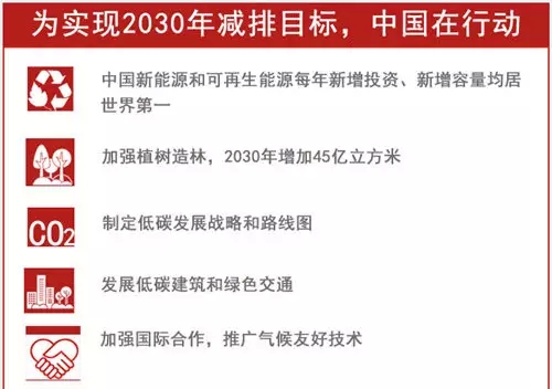 他强调,对于中国来说,这份雄心勃勃的减排计划并不容易,属于踮着脚勉强可以够到。但既然做了承诺,中国就会言必行行必果,为全球应对气候变化作出自己的贡献。