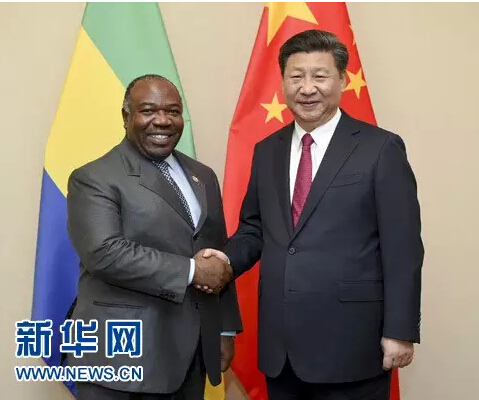 国家主席习近平3日在约翰内斯堡会见加蓬总统邦戈。