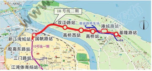 【10号线:二期开工2017年有望建成】2015年1月,10号线二期开工,工程计划设站6座,分别为国帆路、双江路、高桥西、高桥、港城路、基隆路6站。在港城路站可换乘6号线。目前,国帆路已开工建设,2017年有望建成通车。 (来自:东方网)