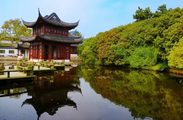 上海大观园是根据中国清代名著《红楼梦》中大观园的描写设计而成的大型仿古园林建筑群,利用江南水乡的特点在园中布置了大面积人工湖泊。全园以大湖为中心,以池塘、沁芳溪沟通各景点,构成有主有支、有动有静的水系,湖边设亭、榭,湖中设曲桥、石舫、石灯,溪上设桥亭,形成山重水复、流水人家的江南园林风光。
