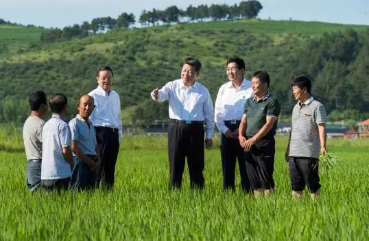 民以食为天,国以粮为先。粮食安全,让身处中南海的总书记时刻记挂在心头。他经常在百忙之中,深入田间地头,察粮情,看农势。2015年7月16日,在秋粮生长的关键时期,习近平总书记来到吉林省延边州和龙市东城镇光东村,他沿着田埂步入稻田,察看水稻长势,同正在进行田间管理的村民和农技人员交流,叮嘱他们细化增产技术措施,争取秋粮丰收。