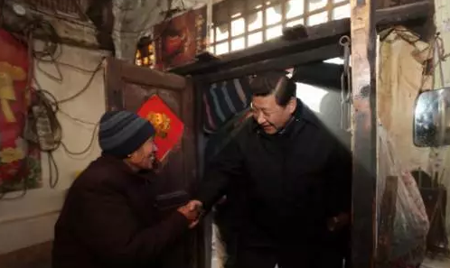 2012年12月29日至30日,习近平总书记在河北省阜平县看望慰问困难群众。这是习近平在龙泉关镇骆驼湾村到困难群众唐荣斌家看望。新华社记者兰红光摄