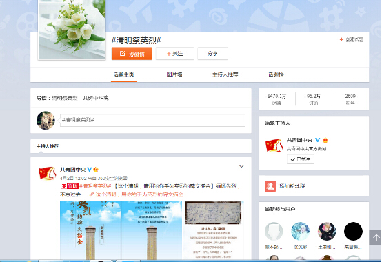 截至4月4日上午,#清明祭英烈#微博话题总阅读量达9274.9万,参与讨论人数达99.9万,#今日中国如你所愿#阅读量达944.2万,14.2万人参加讨论。