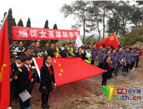 浙江永康开展缅怀女英雄胡济邦清明祭扫活动。图片来源:浙江共青团