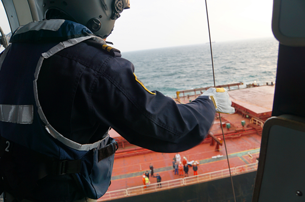 21日晚9点45分,在温州外海海域,散货船“月通”轮上1名船员腰椎受伤,东海救助局立即协调指挥辖区内救助直升机B-7346前往现场接救。历时不到一小时,直升机B-7346成功救助并降落龙湾机场,将1名伤员和1名陪同人员移交120救治。