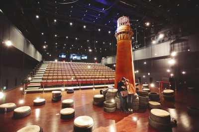 矗立在剧场里的巨型展品《芥子灯塔》表现了创作者对时间与空间的思考。图/视觉中国