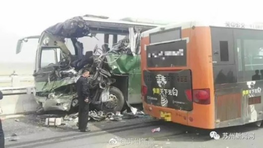 另据无线苏州:记者在木渎人民医院采访到了当时坐在大巴车上的张先生。他头上裹着纱布,沾了不少鲜血。据张先生回忆,当时坐在大巴车靠前位置。“就听见前排人大喊‘要撞车啦’。我当时也没反应过来,就感觉到一股巨大的冲力,人就懵掉了。”