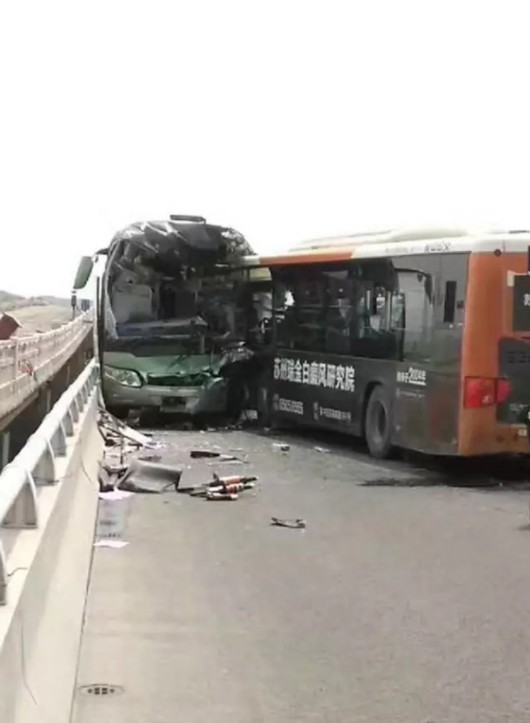 据张先生介绍,他们来自上海一家企业,这次是组团来苏州疗养的,共有100多名同事。今天中午返回上海,没想到遭此意外。当时,他们所乘的第一辆车上大约坐了50人左右,车上还空了两个位置,没有超载。(本文原题为《突发!苏州太湖大桥公交车大巴车相撞致多人受伤》)