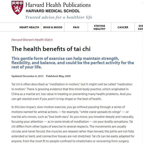 哈佛医学院宣传太极拳。