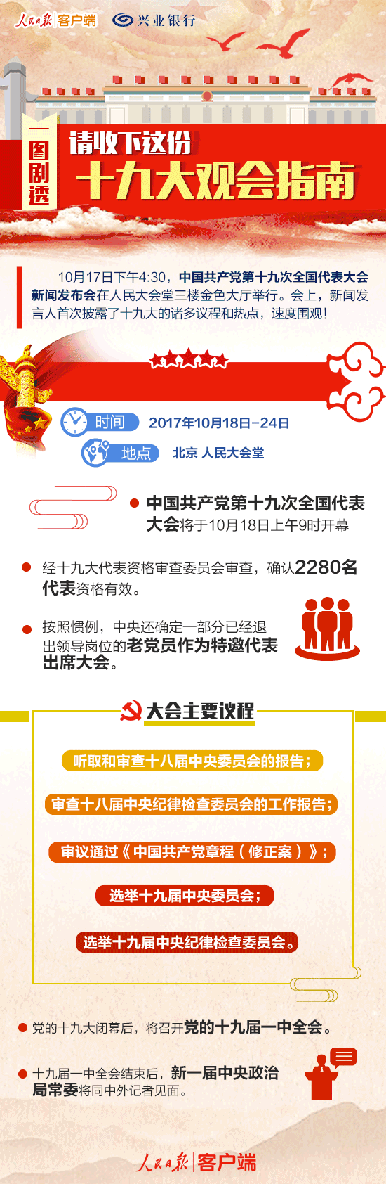 明天上午9点,党的十九大将在北京人民大会堂开幕。