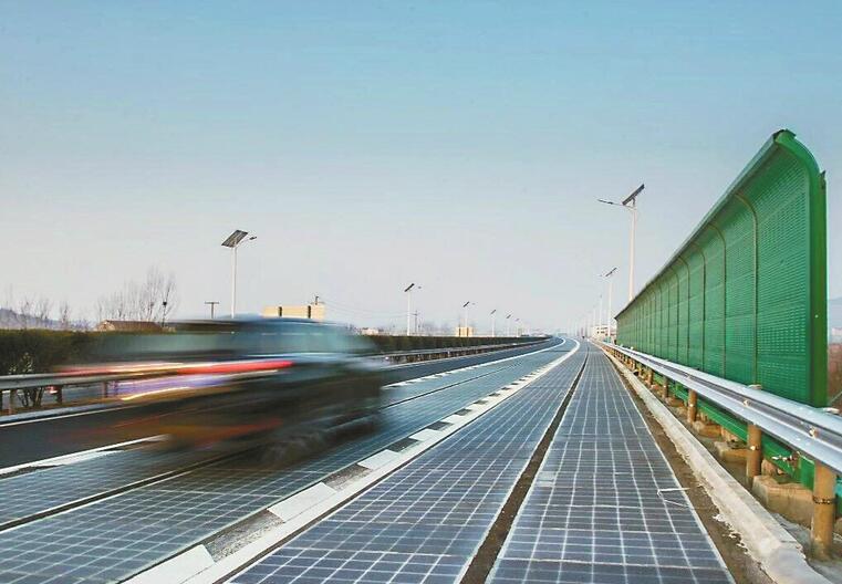 在冬季这段路面还可以将光能转化为热能,消融冰冻积雪,确保行车安全。