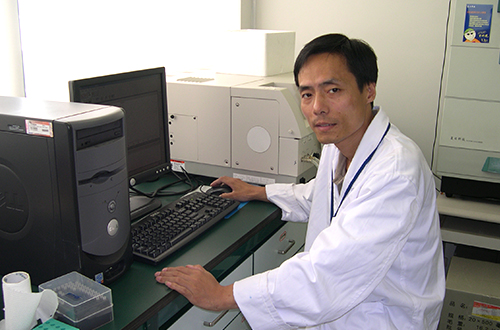 ▲2005年9月15日,中国科学院上海药物研究所王逸平研究员在实验室