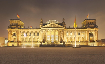 柏林国会大厦建成于1894年,由德国建筑师保罗·瓦洛特设计,呈现出鲜明的古典主义风格。1933年,著名的“国会大厦纵火案”烧毁了国会大厦的中央穹顶,毁坏了议会全体会议大厅。简陋修复后的国会大厦随之成为纳粹德国宣传部的活动中心,并在二战开始后成为希特勒的军事堡垒。1945年4月30日,苏联红军攻占柏林,把红旗插上国会大厦的屋顶,宣告了反法西斯战争的胜利。但同时,该历史建筑也遭到了严重的损毁。
