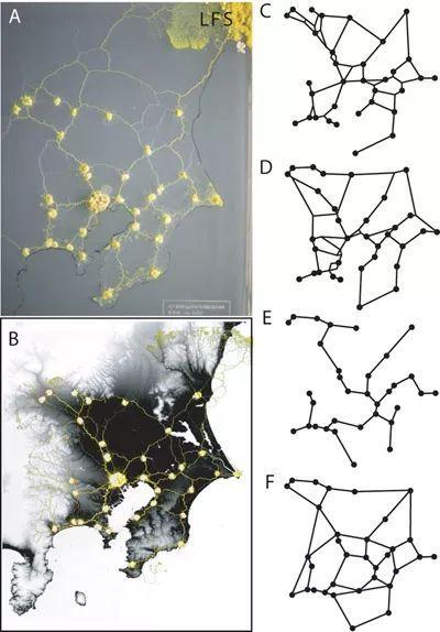 2010年,日本北海道大学的科学家 Atsushi Tero 和同事在《科学》(Science)期刊上发表了一项研究,他们成功地用地燕麦片替代城市,在培养皿里让黏菌绘制了东京铁路系统的线路图。