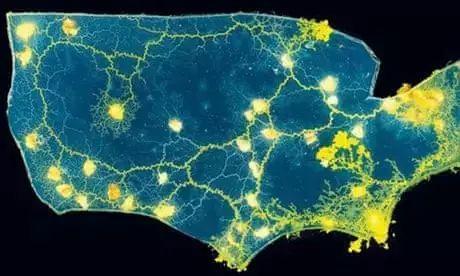 美国新泽西理工学院(NJIT)的助理教授 Simon Garnier 也用美国地图和黏菌做了试验。看到了吧,黏菌3天的成果,和人类用数十年,数百万美金得到的效果几乎没有差别。