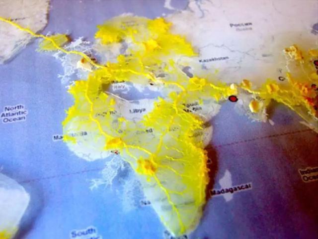 从那时起,许多做交通运输网优化研究的科学家就开始应用黏菌来设计交通网。甚至有人利用黏菌绘制出了丝绸之路和全球贸易网。