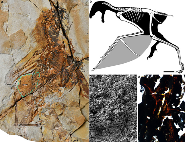 更为重要的是,研究人员在浑元龙上发现了和奇翼龙相似的棒状长骨和翼膜(翼膜中保存有色素体),这一新发现为棒状长骨和翼膜在善攀鸟龙类中的出现提供了确切无疑的证据。