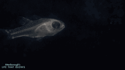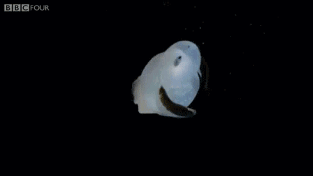 这透明的脑门,缓慢漂浮的状态......它的名字叫“大鳍后肛鱼”,也叫“太平洋桶眼鱼”,1939年的时候在美国加拿大附近海域首次被人发现,但可惜的是,当时人们找到的基本都是残缺不全的鱼体,很难捕捉到完整的太平洋桶眼鱼,直到2004年才在美国加州周围水深800米的地方第一次拍到一只完整的鱼。
