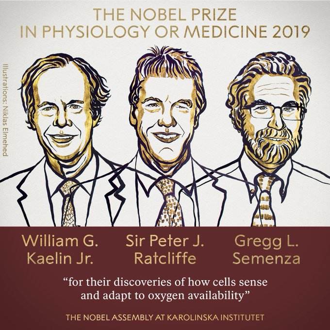 北京时间10月7日下午5点30分,2019年诺贝尔生理学或医学奖公布,获得者分别是来自哈佛医学院达纳-法伯癌症研究所的威廉·凯林( William G. Kaelin, Jr.),牛津大学和弗朗西斯·克里克研究所的彼得·拉特克利夫( Peter J. Ratcliffe) 以及美国约翰霍普金斯大学医学院的格雷格·塞门扎(Gregg L. Semenza)。