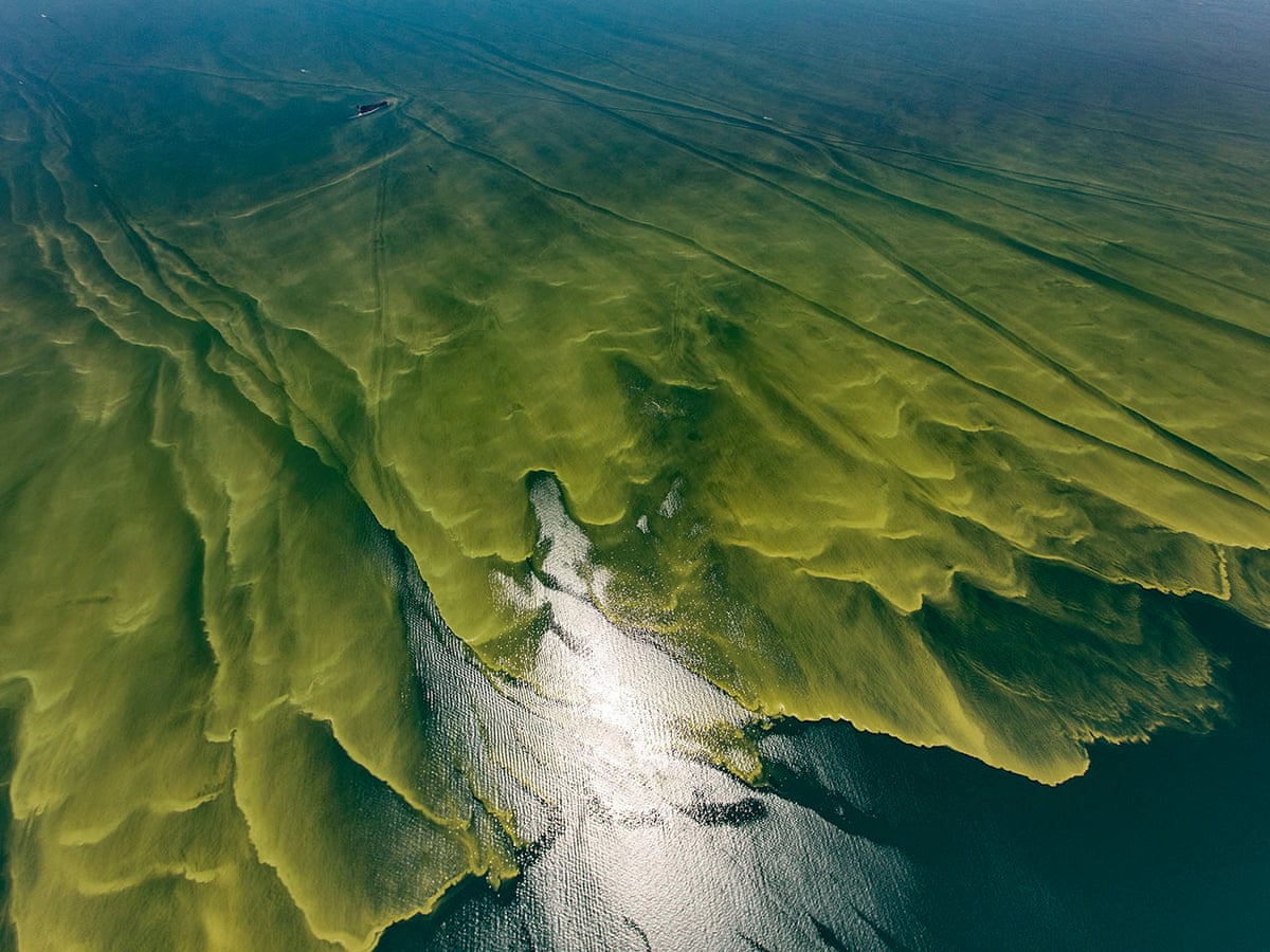 蓝藻离我们并不远。虽然我们肉眼看不到单个或少量的蓝藻,但当它们聚集起来的时候,就成了死水里一片绿油油的水华,有时候甚至可以从太空看到。
