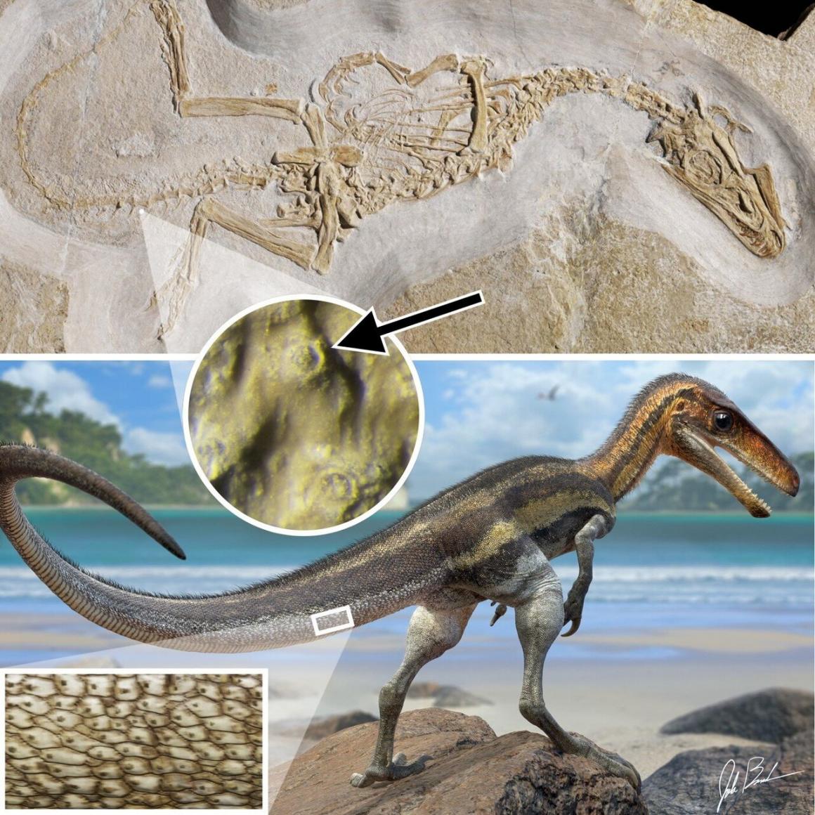 2006年,名为侏罗猎龙(Juravenator)的恐龙化石在德国面世,它是小型肉食性恐龙,身长约75厘米,也是欧洲已知最完整的兽脚类恐龙化石之一。正常光照下都能明显看见尾巴的鳞片痕迹,当时科学家认为这只是一层普通的保护层或装饰性鳞片。