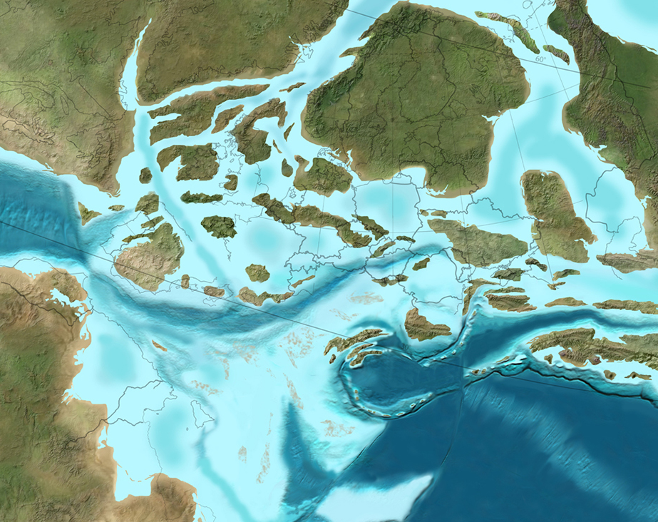 约一亿五千万年前的欧洲,四分五裂,岛屿众多。(图源Colorado Plateau Geosystems)