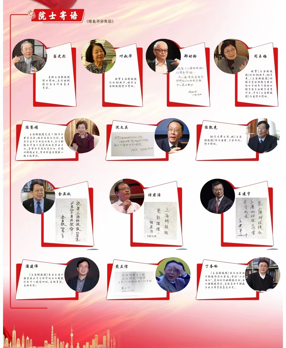 一张张定格历史的老照片、一个个见证上海科技发展的精彩版面、一件件全国科技发展的大事件…… “上海科技发展,我们一直都在”展览暨上海科技报创刊50周年工作交流会12月16日在上海图书馆东馆举行。翁史烈、叶叔华、郑时龄、闻玉梅、陈赛娟、沈文庆、陈凯先、金亚秋、褚君浩、王建宇、潘建伟、戴立信、丁奎岭等13位院士(院士排名不分先后)发来寄语,祝愿科技报和上海科技工作者共同成长。