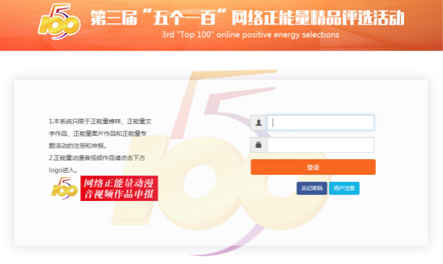 ▲第三届“五个一百”网络正能量精品评选活动申报页面