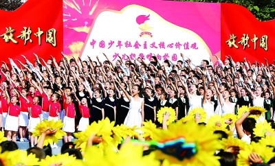 构建良好的社会舆论生态,要弘扬主旋律,激发正能量。图为北京市丰台第五小学学生在表演“社会主义核心价值观少儿声乐套曲”。新华社发