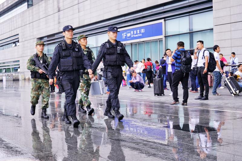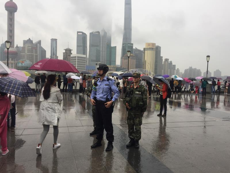 文汇网讯 (通讯员 李辉)9月30日下午,申城国庆安保警力雨中全岗,全力确保本市社会面和重点区域平安有序。