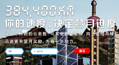 联手UNDER ARMOUR来挑战史上最长距离的赛跑。 中国第二次登月以我们的双脚实现。地球到月球的距离是384,400公里,需要靠大家的力量一步步逼近!