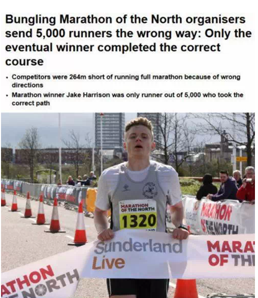 在英国有个叫做“北方马拉松”的比赛,比赛的规模不大,但“好在”主办方足够乌龙,让它迅速红遍跑圈。