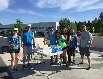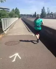 此刻美国大西北的天空万里无云,阳光直射下来,目测在路上被晒死或渴死的几率比一般比赛要高,所以我从头到尾都用手拿着一个饮料瓶子,看到水站就进去灌点水。