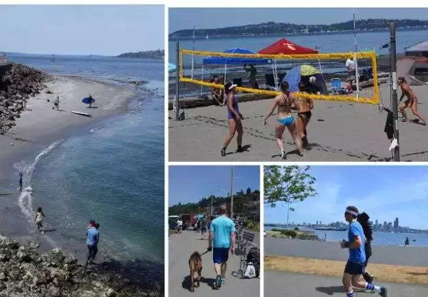 身边游人如织,我甚至还看到打着遮阳伞的中国大妈们从旅游大巴上下来,用中文响亮而愉快地交谈着。海滩上玩什么的都有,皮划艇、沙滩排球、自行车、轮滑、遛狗……当然还有很多人在跑步。
