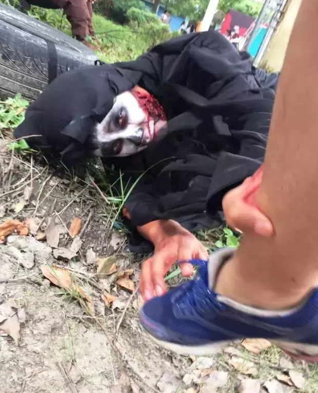 果然,这是个青春片!一大群画好了僵尸妆的年轻人,穿上破破烂烂的、血迹斑斑的戏服,在身边走来走去,张牙舞爪地比划出各种鬼脸。