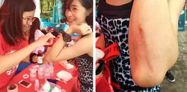 这比赛跟cosplay差不多,在报名的时候就将游戏角色分为两组,报名者可以报名参加“僵尸”(zombie)或者“人类”(survivor)。每个“人类”身上有三根红色的血条,代表着生命值。在5公里的路程中,“人类”要防止身上的血条被“僵尸”撕掉,还要穿越各种障碍,最终顺利到达终点,身上至少还有一根血条的“人类”才能获得完赛奖牌。